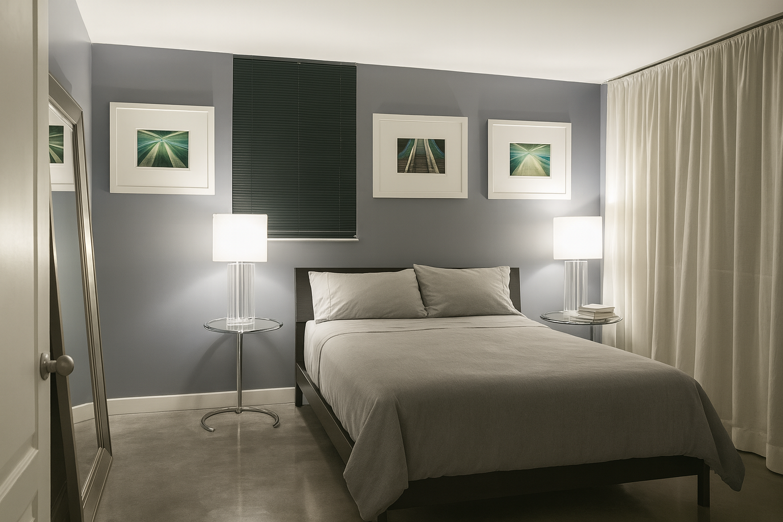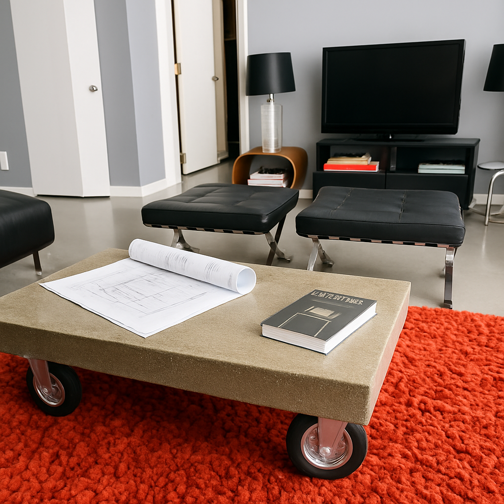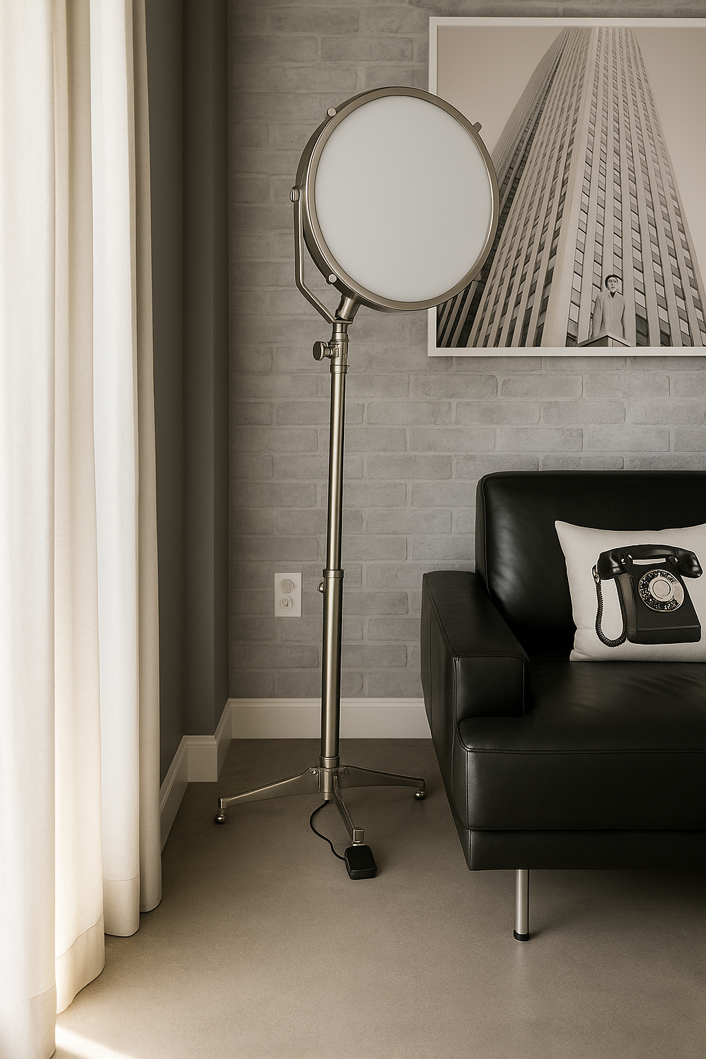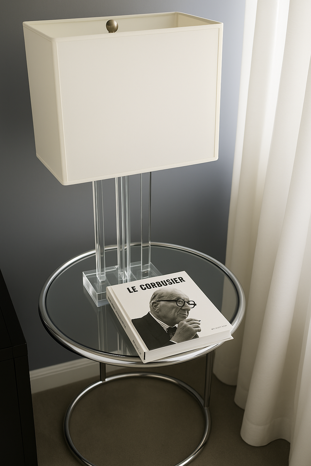 Iluminación que genera espacios encantadores y objetos de arquitectura, fotografía, muebles de Le Corbusier y literatura de arte. Todo en la paleta de colores grises.