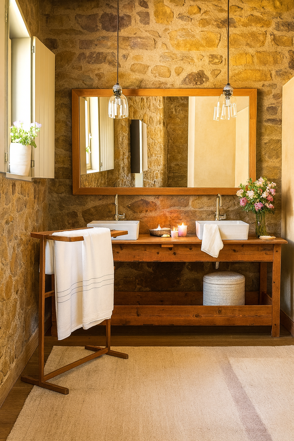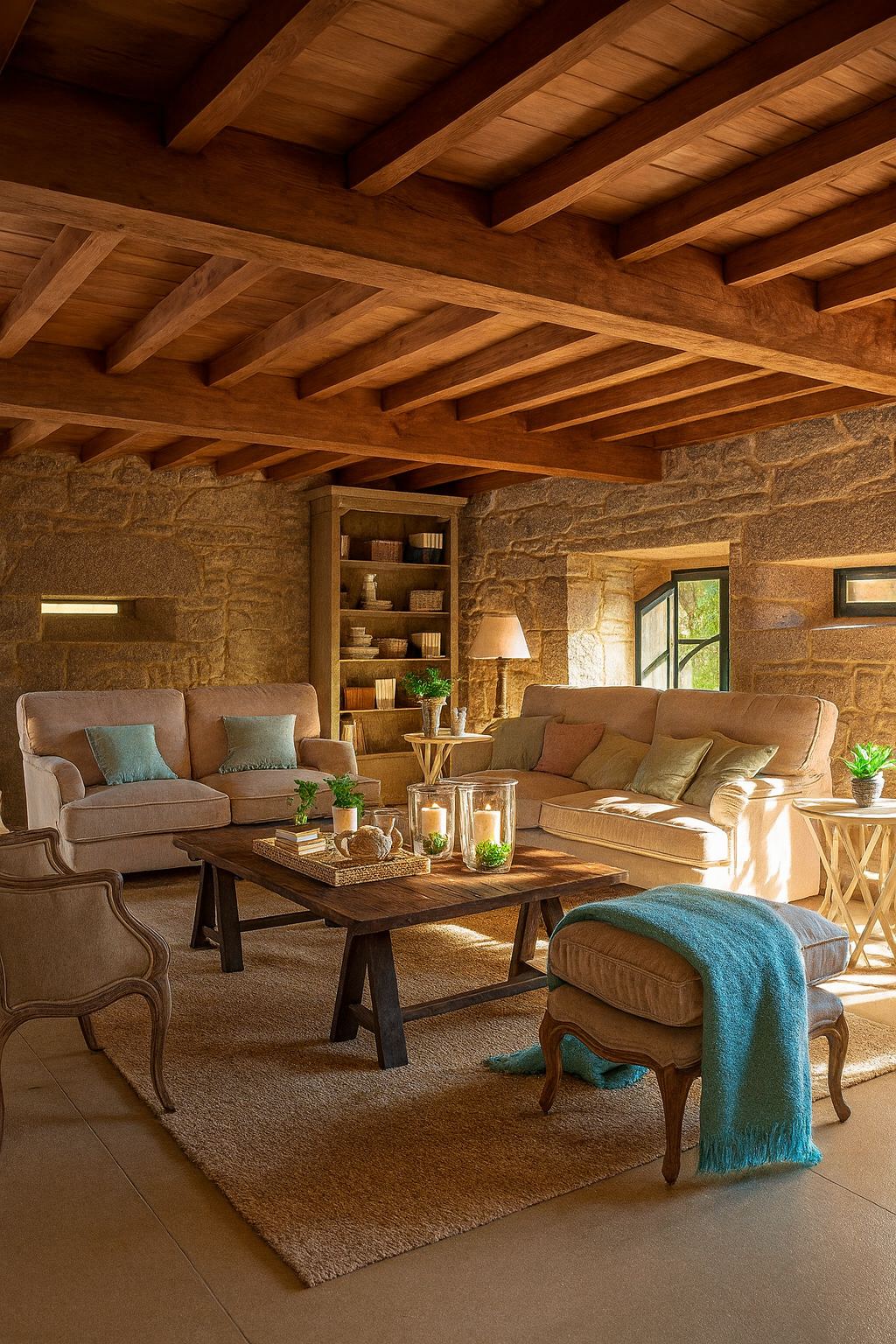 Una casa que respira naturaleza, hecha de piedra, madera y luz.